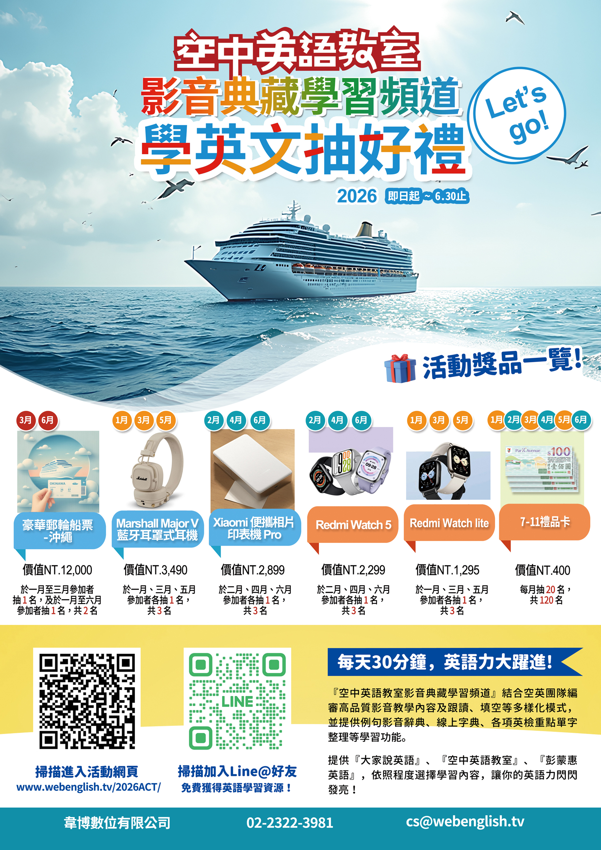 詳細參加辦法請參考https://www.webenglish.tv/2026ACT/rule.jsp