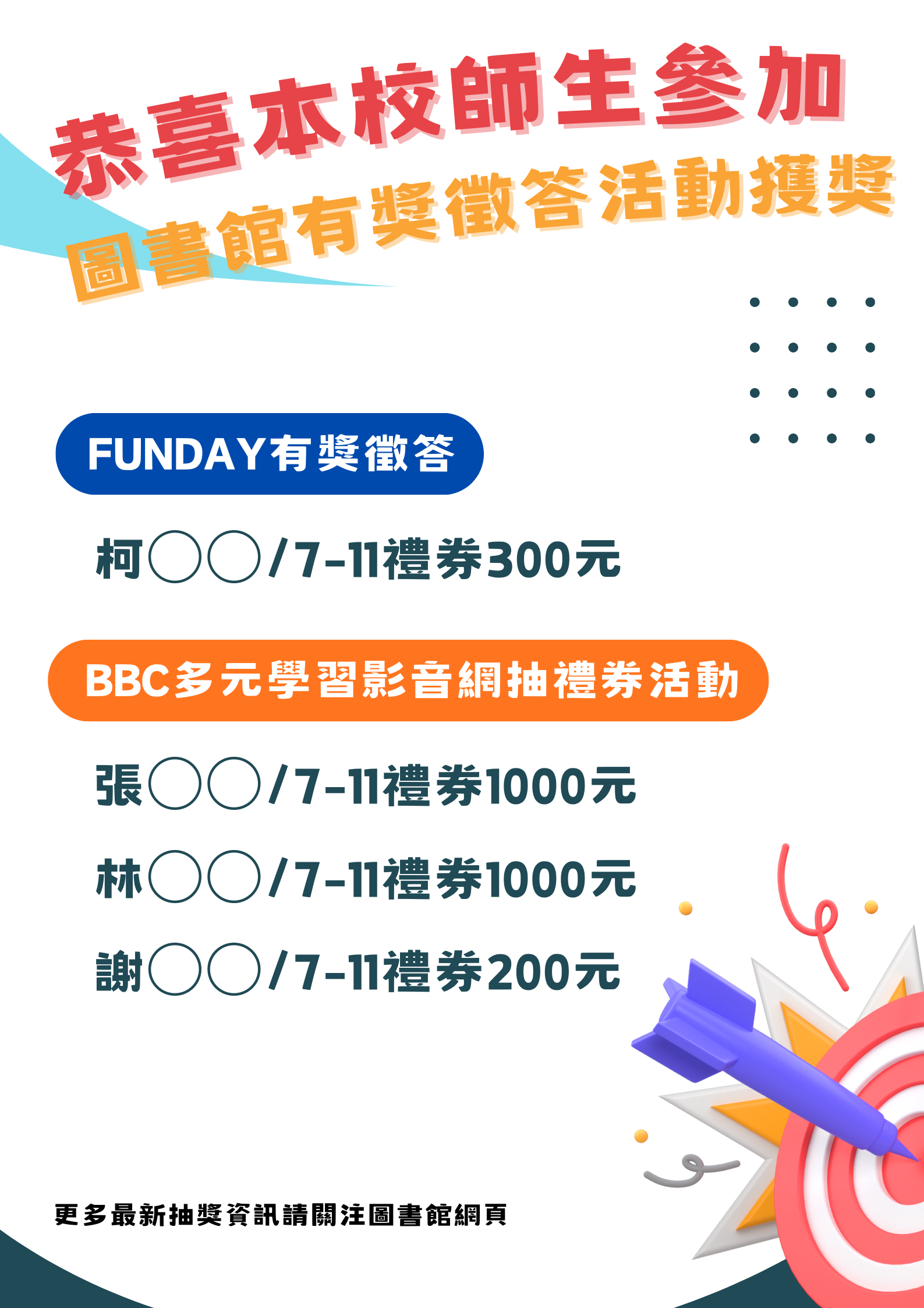 【最新消息】恭喜本校師生參加有獎徵答活動獲獎